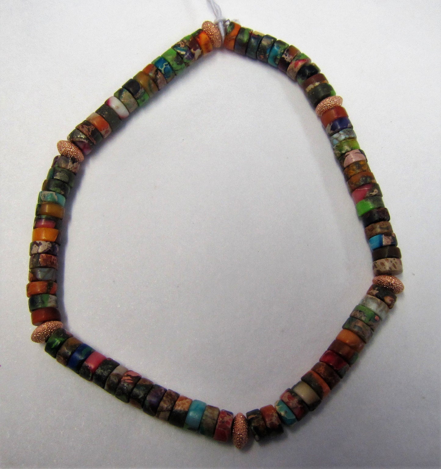Purchase your unique Handcrafted bracelet with multicoloured Jasper and Rose gold sterling silver beads Today!