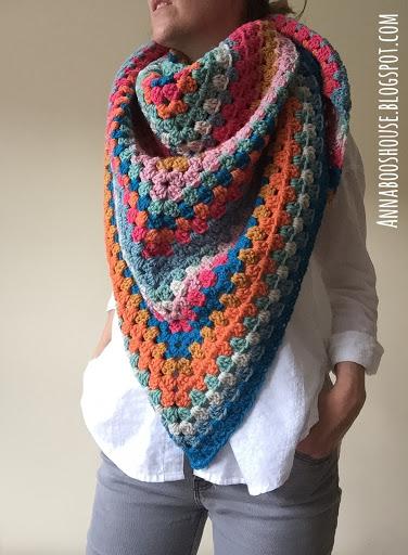 Sarah wanted to make something incredibly simple that would show off the gorgeous colours and be quick and easy to make (our favourite sort of project) And so a half-Granny design seemed perfect.