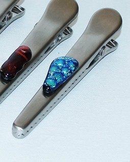 - handmade fused stained glass on a stainless steel, alligator tooth bag clip