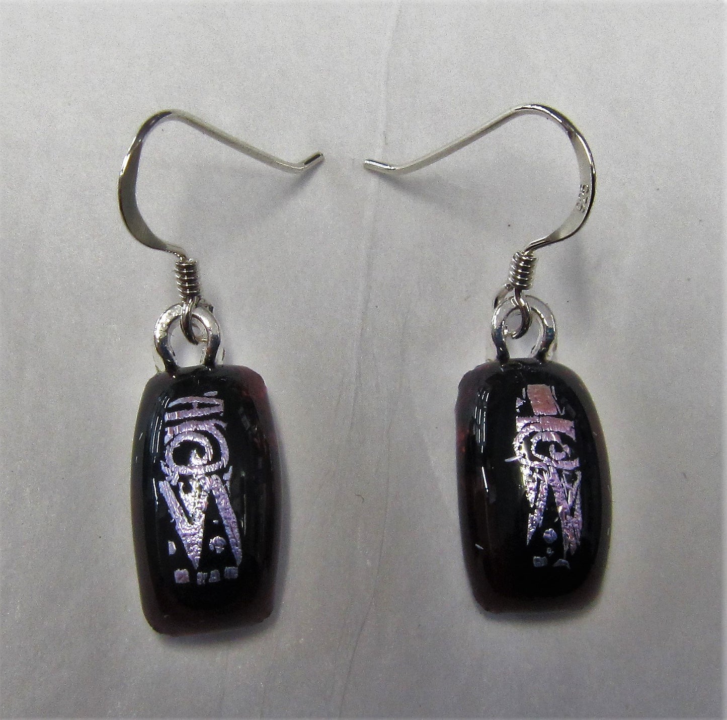 Purchase your Handcrafted dark fuschia with dichroic glass pattern fused glass earrings on 925 sterling silver hooks Now !!