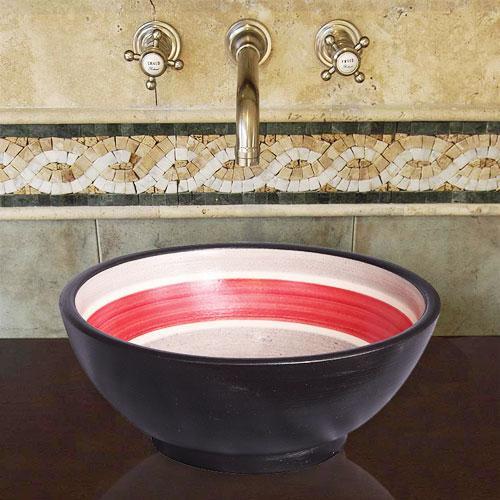 Handcrafted Round Ceramic Vessel Sink - Striped Black