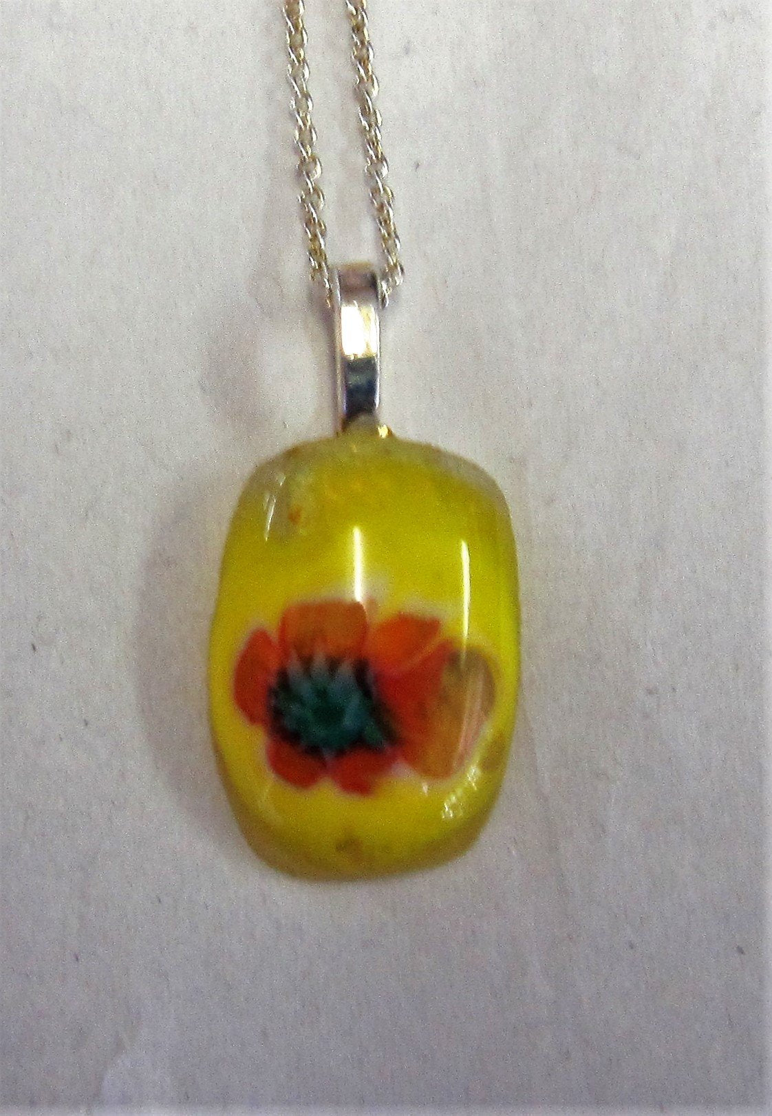 Purchase your Handcrafted yellow fused glass pendant on sterling silver necklace today!