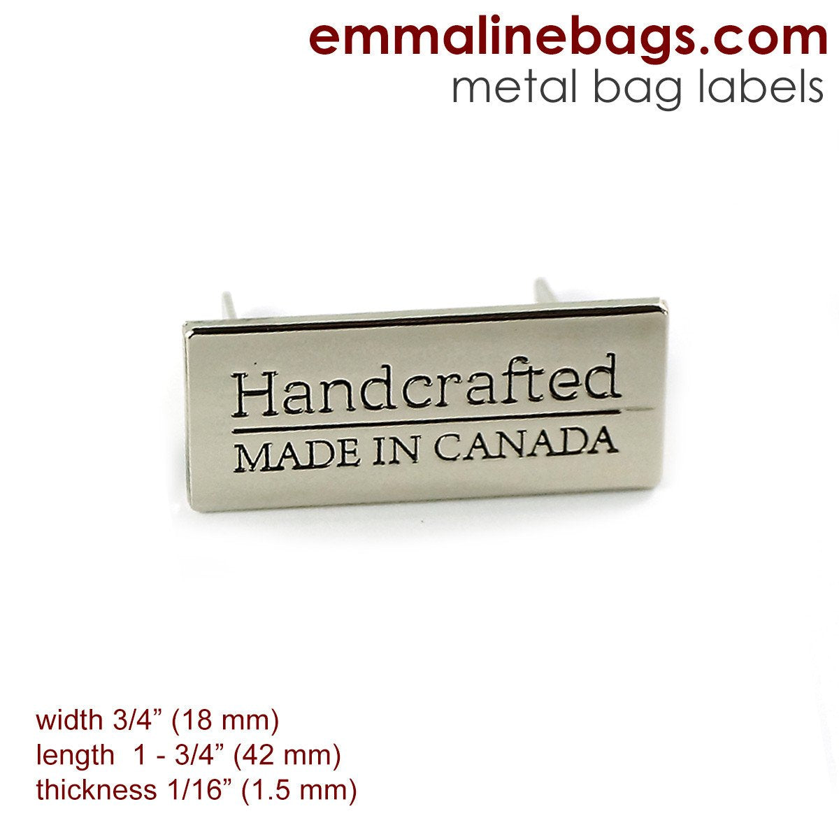 Metal Bag Label: "Handcrafted - Made in Canada"