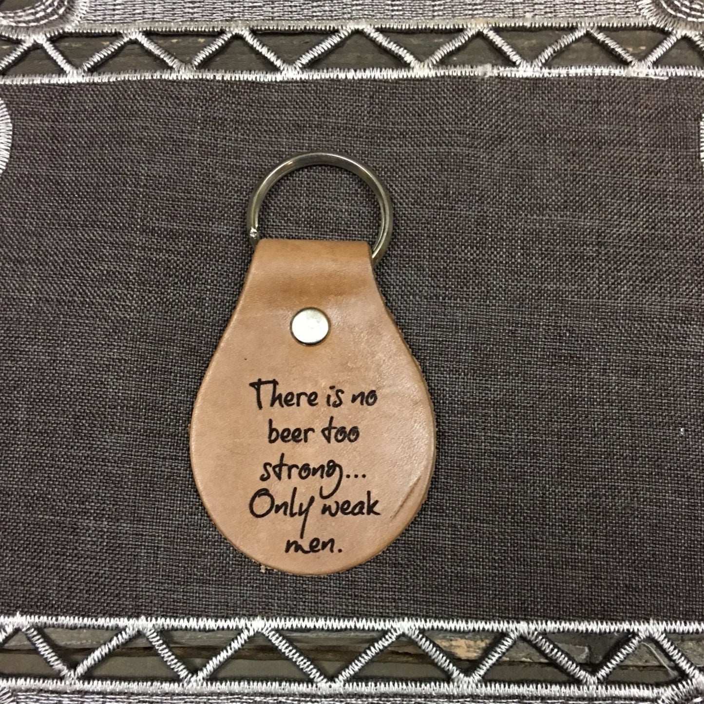 There is No Beer Too Strong Chain Fob Keychain Home Craft Brew Brewing IPA Lager Small Batch Local Public House Pub Hops - Brown Tan Leather